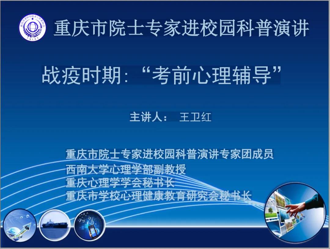 王卫红:副教授、西南大学心理学部应用心理学硕导、心理学部社区心理实验室主任,重庆市学校心理健康教育研究会副理事长,重庆市人民政府危机干预专家组成员,国家心理咨询师评审专家。